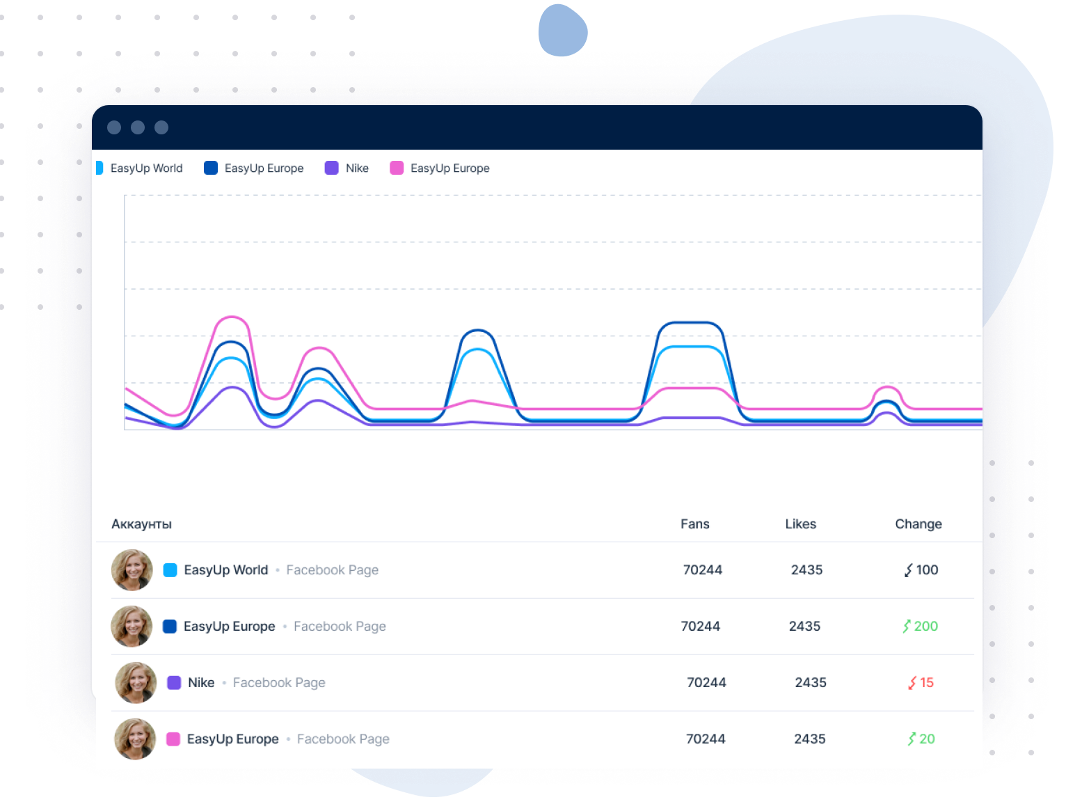 Easyup позволяет быстро и эффективно проанализировать конкурентов в социальных сетях собирая все данные в одном месте.